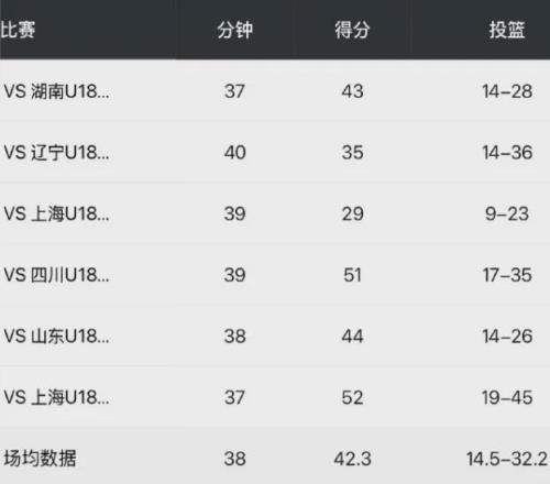 这哥们在过去的U18全运会,场均能够爆砍42.3分外加4.3板4.5助,包括两次单场50+,投篮命中率高达52.3%,展现出了在同年龄段超班乃至降维打击的实力,被认为日后有望成为中国男篮第一得分手。