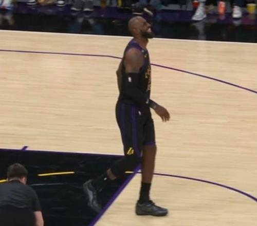 詹姆斯第三节后半段上篮落地后右脚不适,一瘸一拐仍在坚持比赛,所幸詹姆斯无大碍。